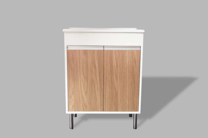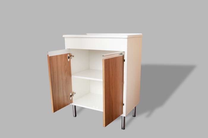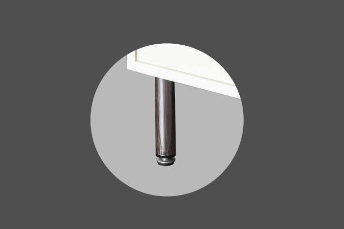 Pés de alumínio com regulagem: Permite o ajuste de altura do gabinete, proporcionando mais estabilidade e facilitando a adaptação a diferentes tipos de piso.