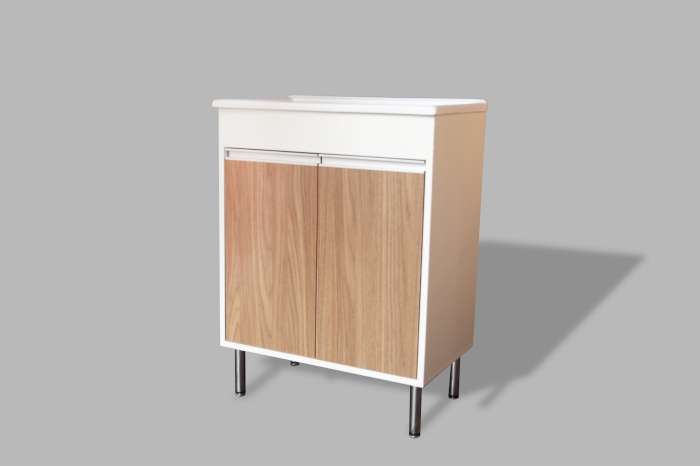 Gabinete Banheiro Beldroega Branco porta Amadeirado