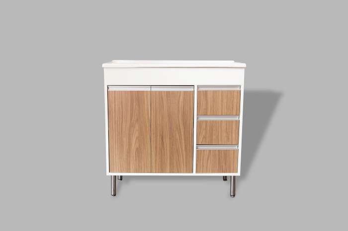 Com 2 portas e 3 gavetas, o design inteligente proporciona uma organização prática e acessível, aproveitando ao máximo o espaço disponível para armazenar seus itens essenciais de forma eficiente e sem abrir mão da estética. A cuba sobposta de mármore sintético adiciona um toque de sofisticação e durabilidade, além de ser fácil de limpar, o que facilita a manutenção do seu banheiro.